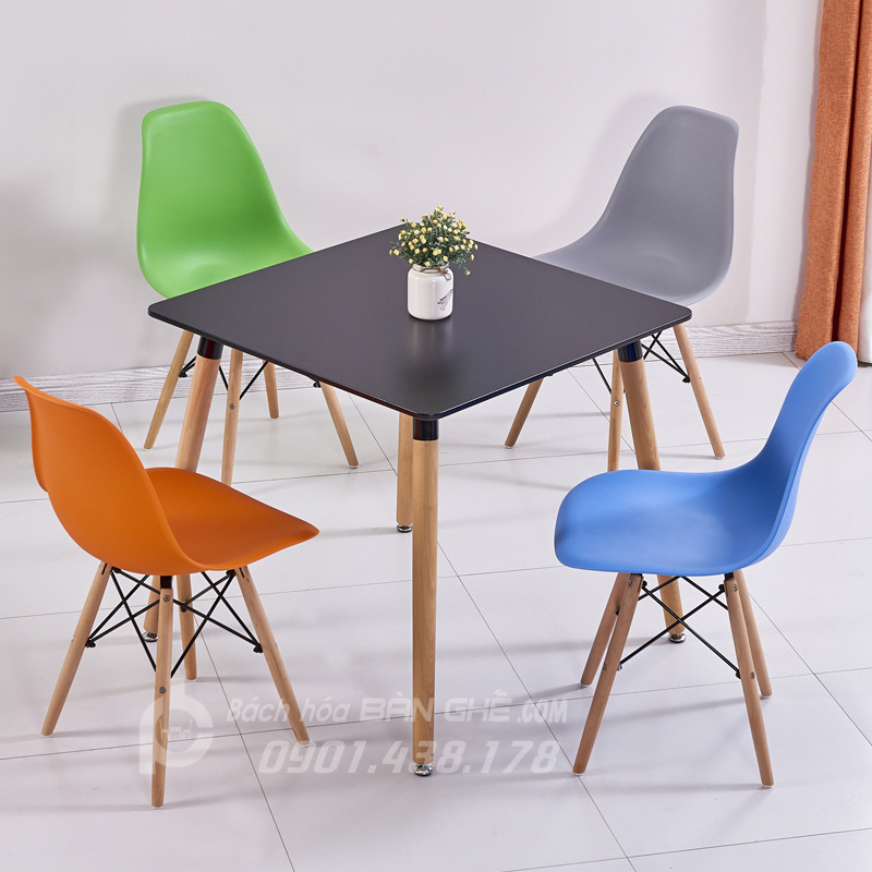 - 1 Bàn ăn Eames vuông màu trắng 70x70cm BLM03, cao 75cm, mặt gỗ MDF phủ nhựa composite chống thấm, chống trầy